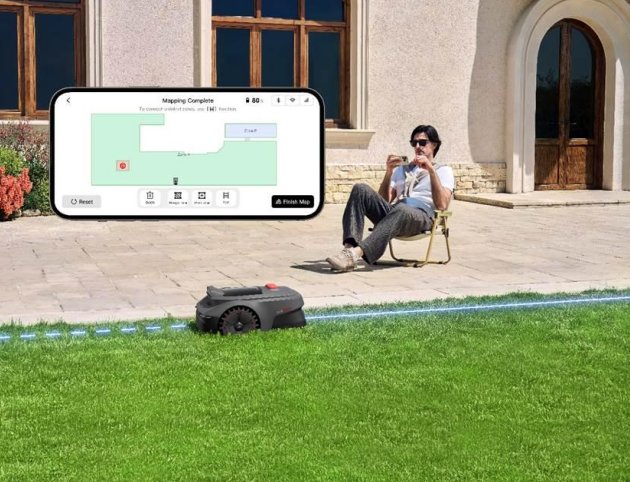 MOVA自研的UltraEyes技术则采用了无人驾驶领域的视觉同步定位与建图(Visual SLAM)技术,仅需5分钟即可完成300㎡庭院的高精度地图构建。