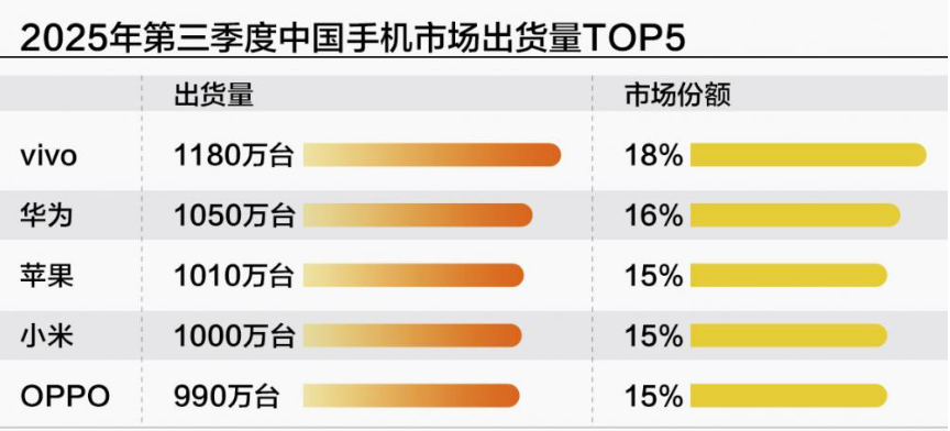 Omdia数据显示,三季度全球出货同比增长3%,本季度的反弹得益于强劲的换机需求,以及多家厂商在繁忙的2025年第四季度到来前,提前在渠道中备货。